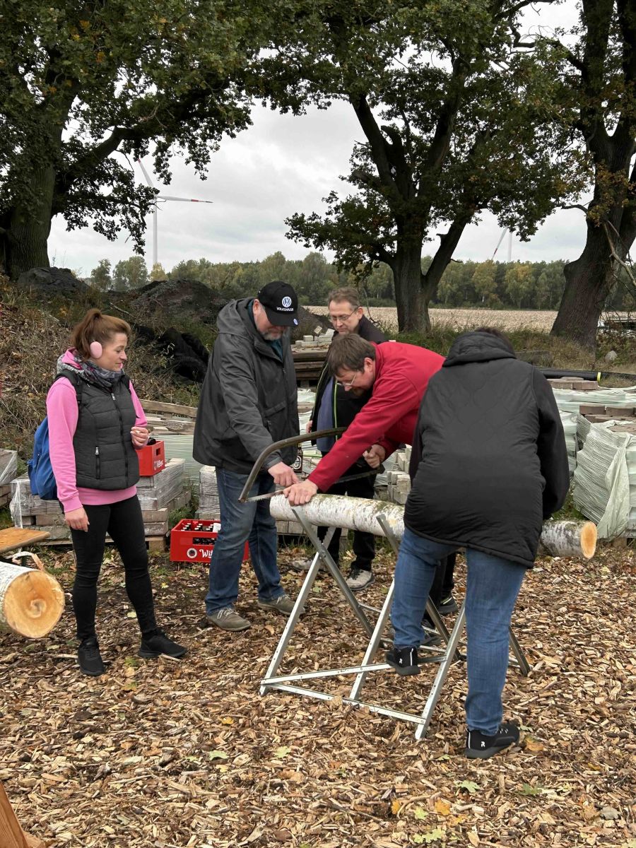 Nach dem Motto „Die Schnapszahl zählt!“ begann die Veranstaltung für die acht Gruppen mit dem Schießen im Schießstand, um anschließend weitere vier Stationen anzulaufen. So musste an einer Station mit alten Sägen eine rund 888 Gramm starke Holzscheibe von einem Birkenast abgesägt werden. Ein schwieriges Unterfangen, denn die Sägen waren durchweg alle stumpf. Ferner musste an einer Station nach Pilzen gesucht werden. Dabei ging es jedoch nicht um Maronen oder Steinpilze, sondern um „Pilsflaschen“. Und am Dorfplatz in Westerholz mussten die Gruppenmitglieder Ringe auf eine Nagelwand werfen, um Punkte zu sammeln.